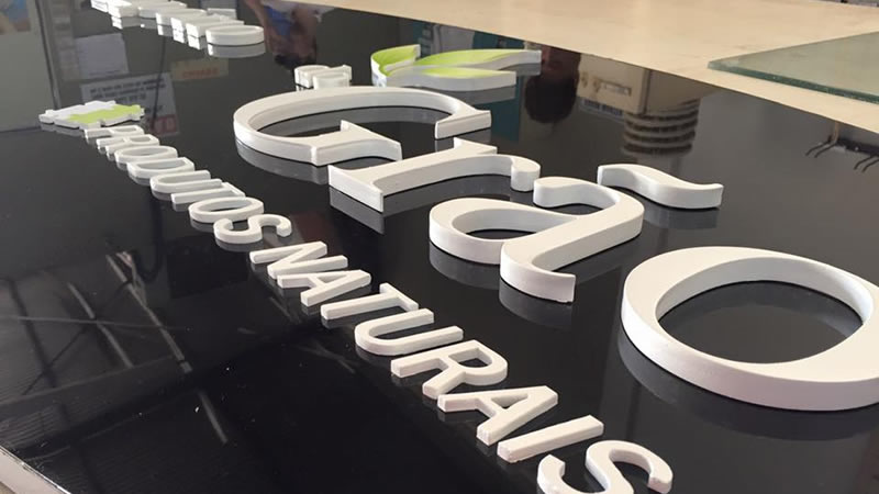 Painel com imagens em alta definição que oferece sinalização visual e destaque a marca da sua loja.